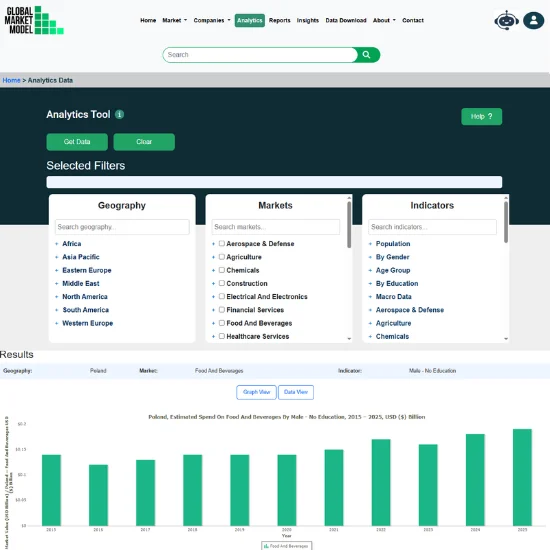 The Global Market Model is the world's leading market sizing database covering the size and growth of hundreds of goods and services markets - both in terms of monetary value as well as in units/measurements sold. Data is available for 60 geographies and regions, as displayed through the 'Markets' tab.